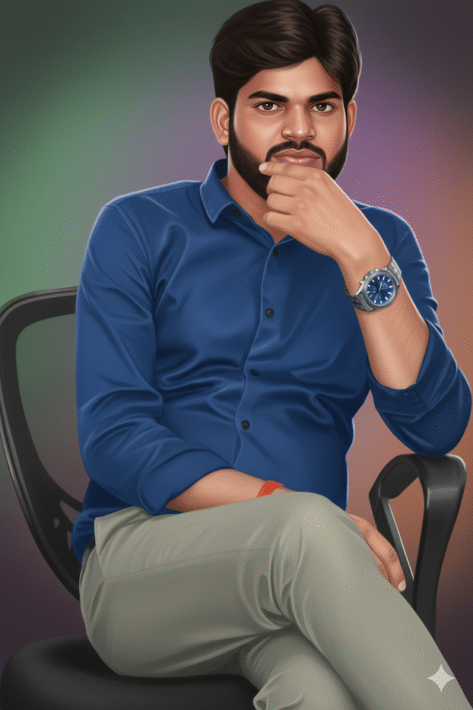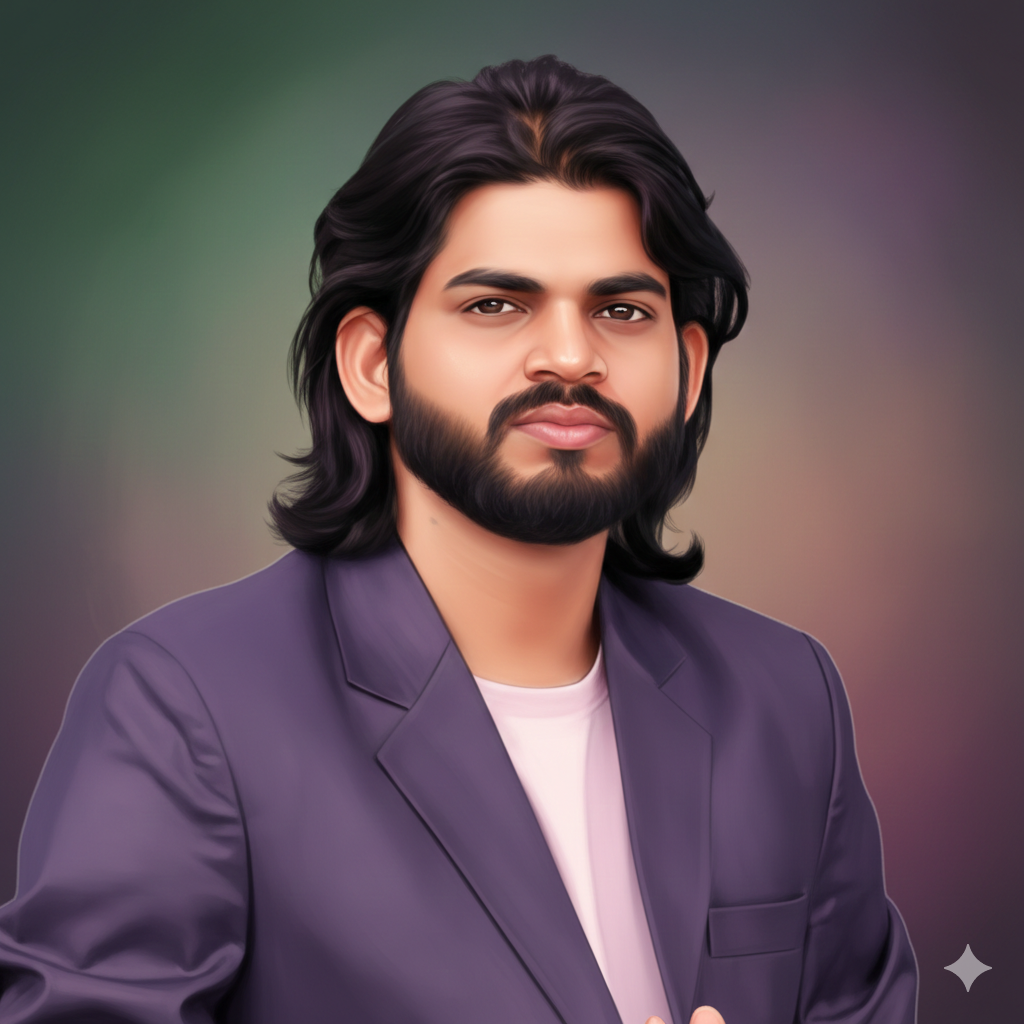 Promtpt: Generate a highly detailed digital portrait based on the uploaded photo. Preserve full likeness and facial structure while enhancing features with smooth warm-toned skin, symmetrical detailing, and soft glow highlights on the forehead and cheeks. Apply a realistic yet polished illustration style with glossy skin texture, sharp expressive eyes, and natural hair detail. Add cinematic soft lighting for depth. Create a Colourful background with softly swirling gradient colours in green, purple and orange tones, slightly blurred to keep focus on the subject. Use studio portrait composition, centered framing, high resolution, refined brush strokes, realistic hair texture, and 8K ultra-quality artistic digital painting finish.” Dont change facial expressions, use the same face